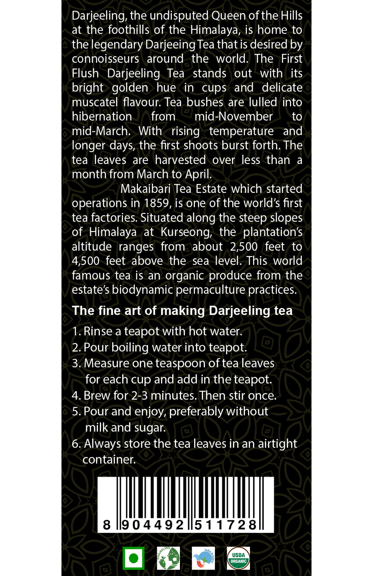 Darjeeling Tea is admired worldwide for its muscatel flavour. Due to its unique flavour owing to its provenance in the Darjeeling Himalayas, it has been conferred on with Geographical Indication (GI).