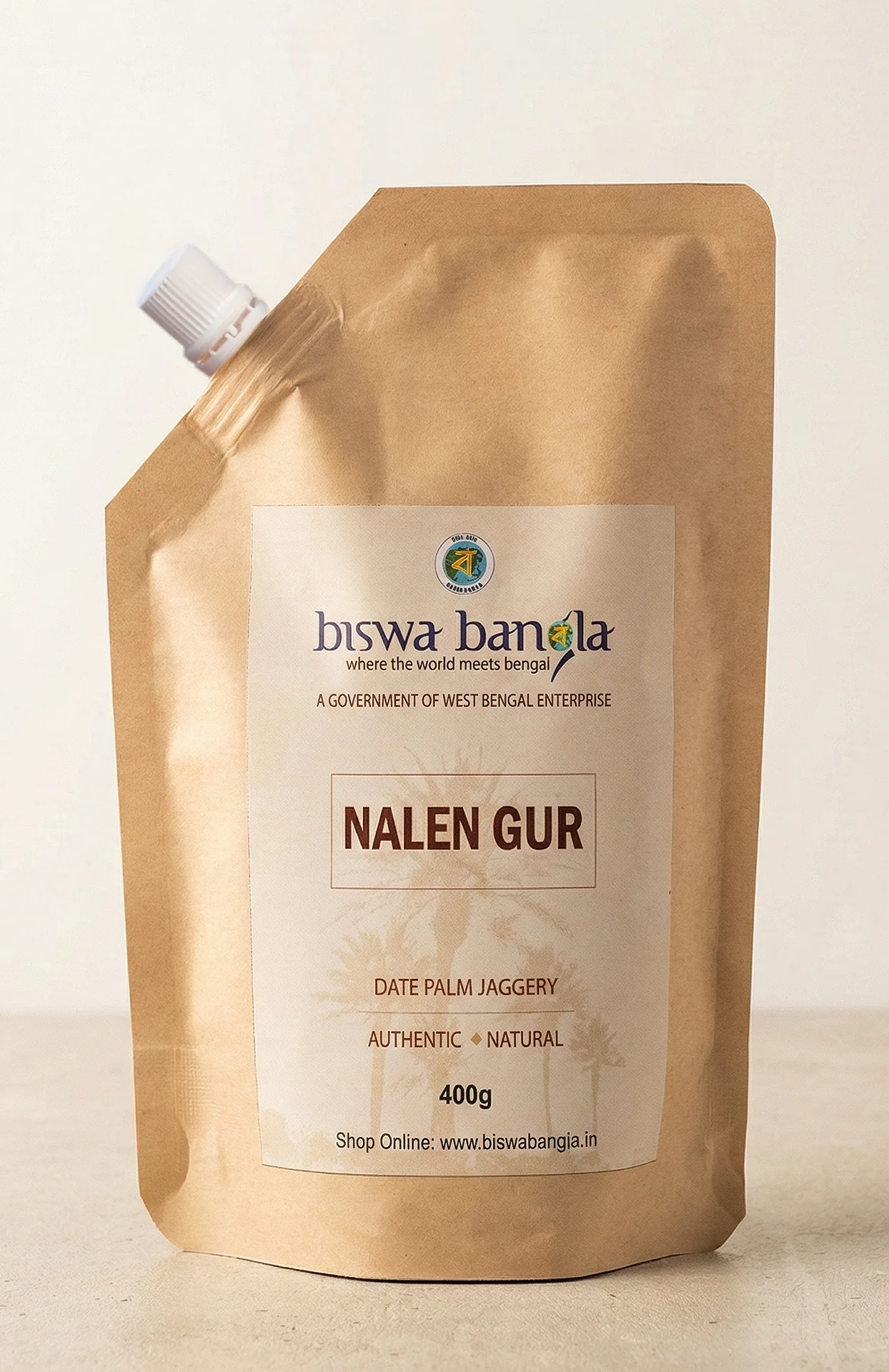Nalen Gur (Date Palm Jaggery) is one of the most widely admired winter delicacies of Bengal. Biswa Bangla, a Government of West Bengal enterprise, presents this authentic Nalen Gur produced by the traditional farmers and artisans of Bankura in collaboration with Earth Story Farms, a social enterprise committed to promoting sustainable farming practices and an unadulterated farm-to-table experience devoid of artificial preservatives and chemicals.