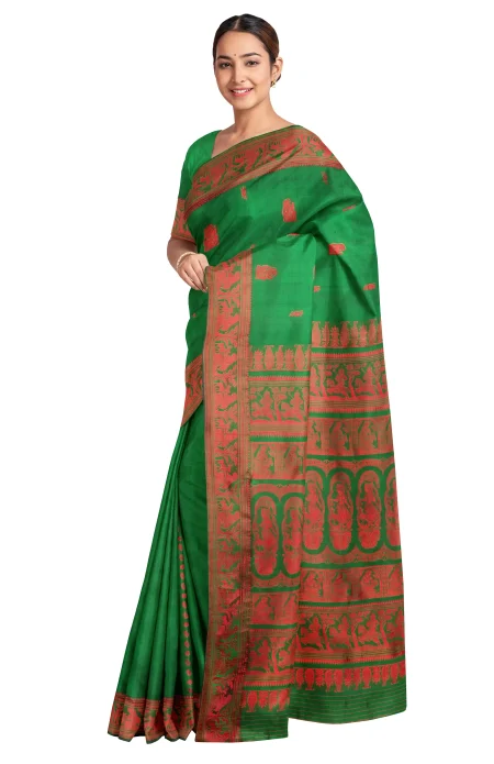 Baluchari, the widely admired silk saree is a Geographical Indication (GI) product of Bengal and has a history of over 200 years. It is characterised by its intricate designs that often depict scenes from India’s ancient epics and mythology. The sophisticated hand-weave and colour harmony make Baluchari an object of desire.