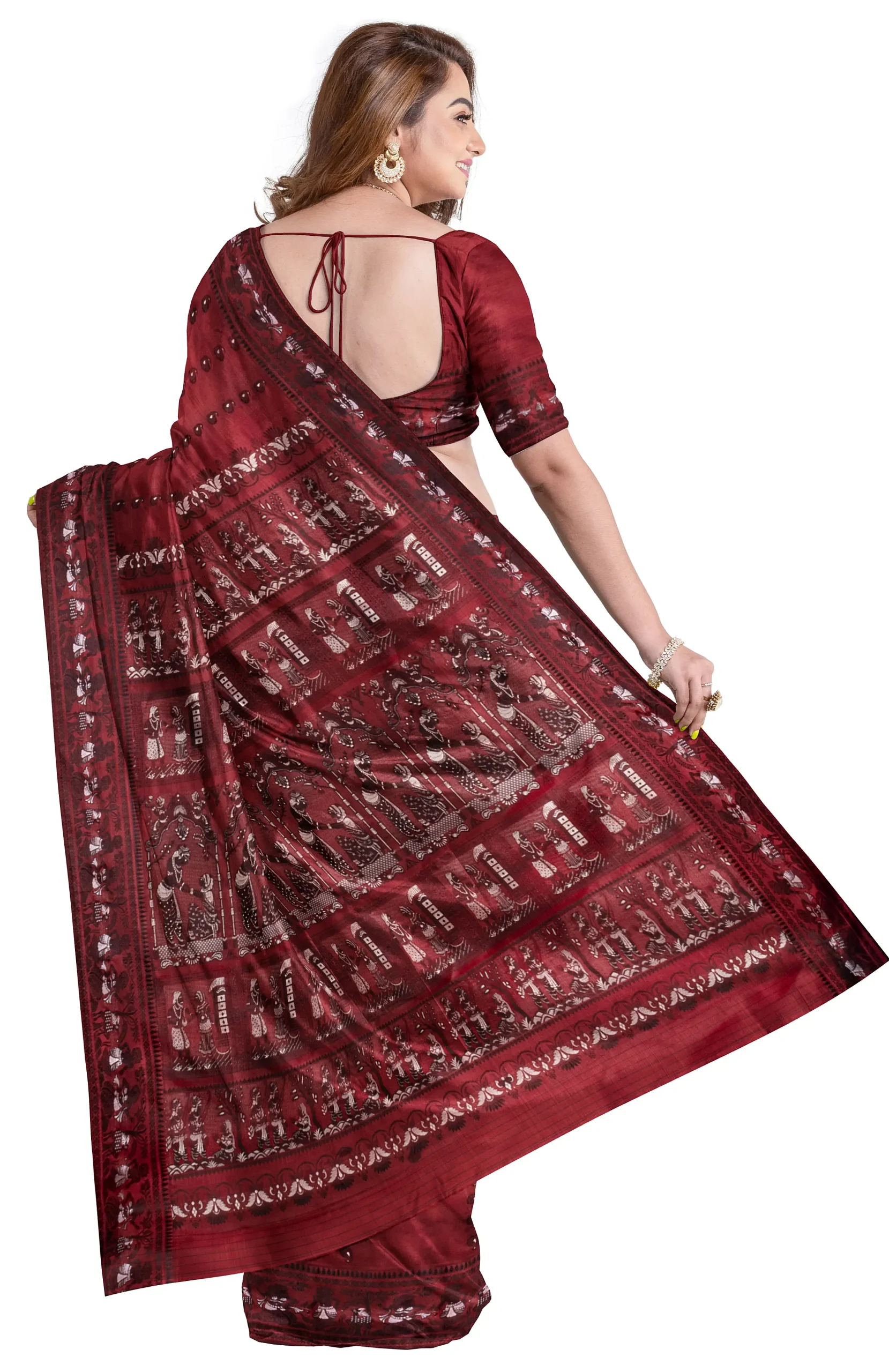 •  Authentic Baluchari Silk Saree, handwoven in Bengal