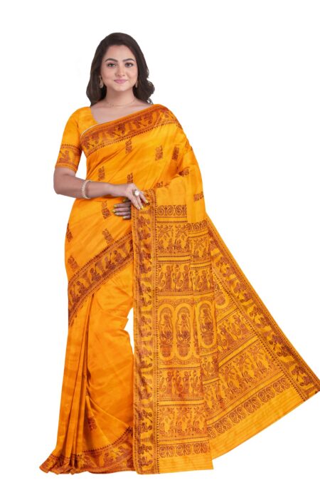 Baluchari, the widely admired silk saree is a Geographical Indication (GI) product of Bengal and has a history of over 200 years. It is characterised by its intricate designs that often depict scenes from India’s ancient epics and mythology. The sophisticated hand-weave and colour harmony make Baluchari an object of desire.