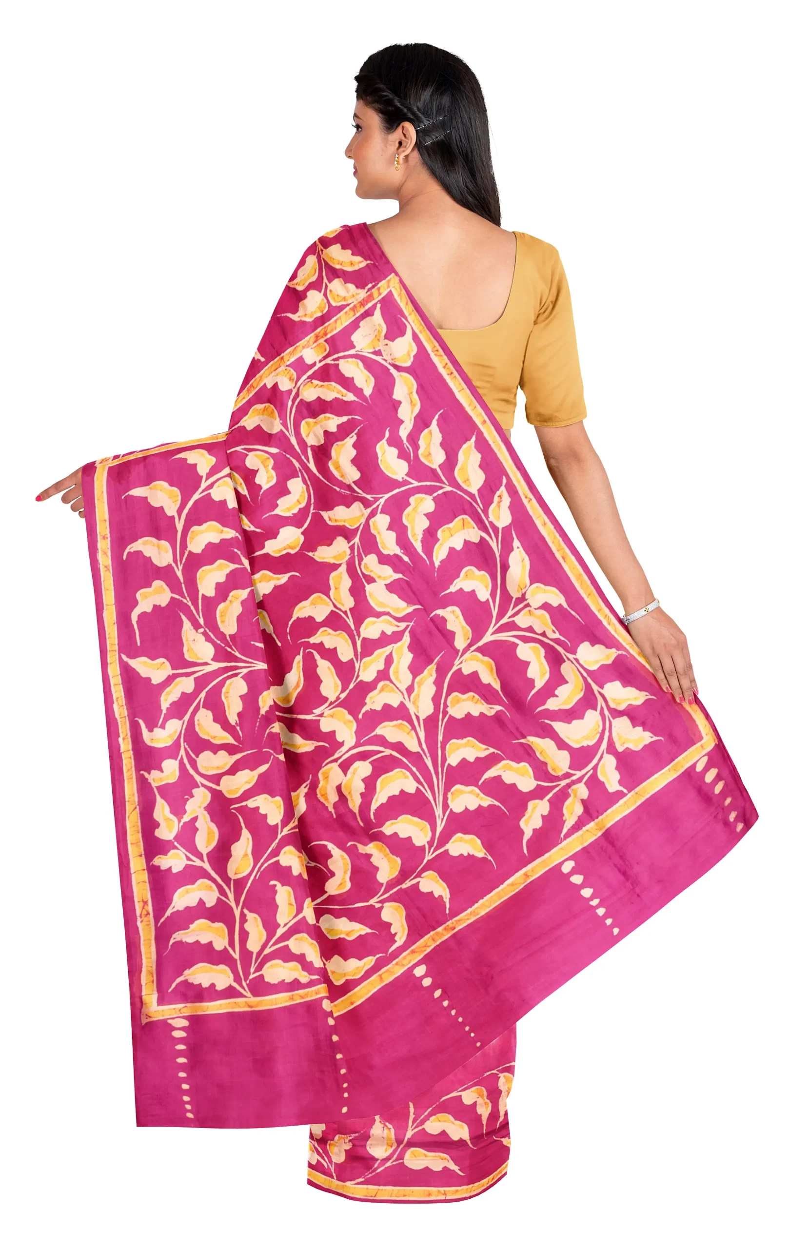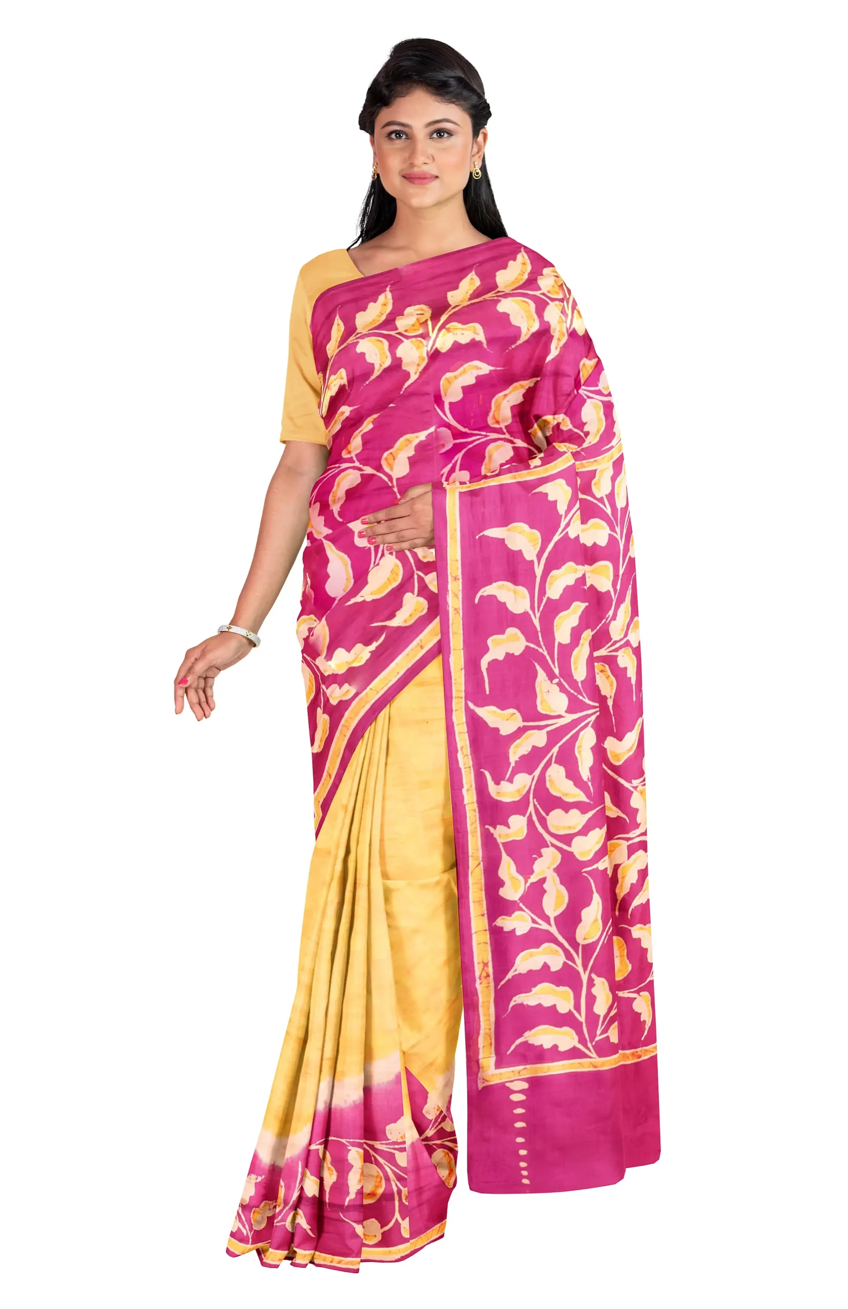 Today, batik prints can be found on sarees, dupattas and wall hangings, dresses, bags, accessories and home furnishing. Biswa Bangla is creating contemporary designs in vibrant colours on batik with the young women of Birbhum work in as members of Self-Help Groups. An artisan takes around 2-4 days to create a batik saree.