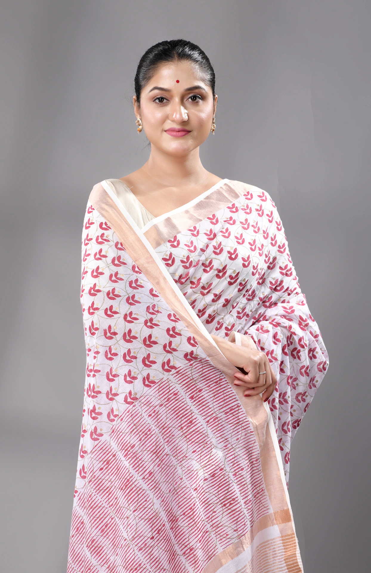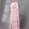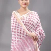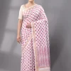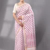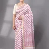 Block Printed Cotton Saree – White