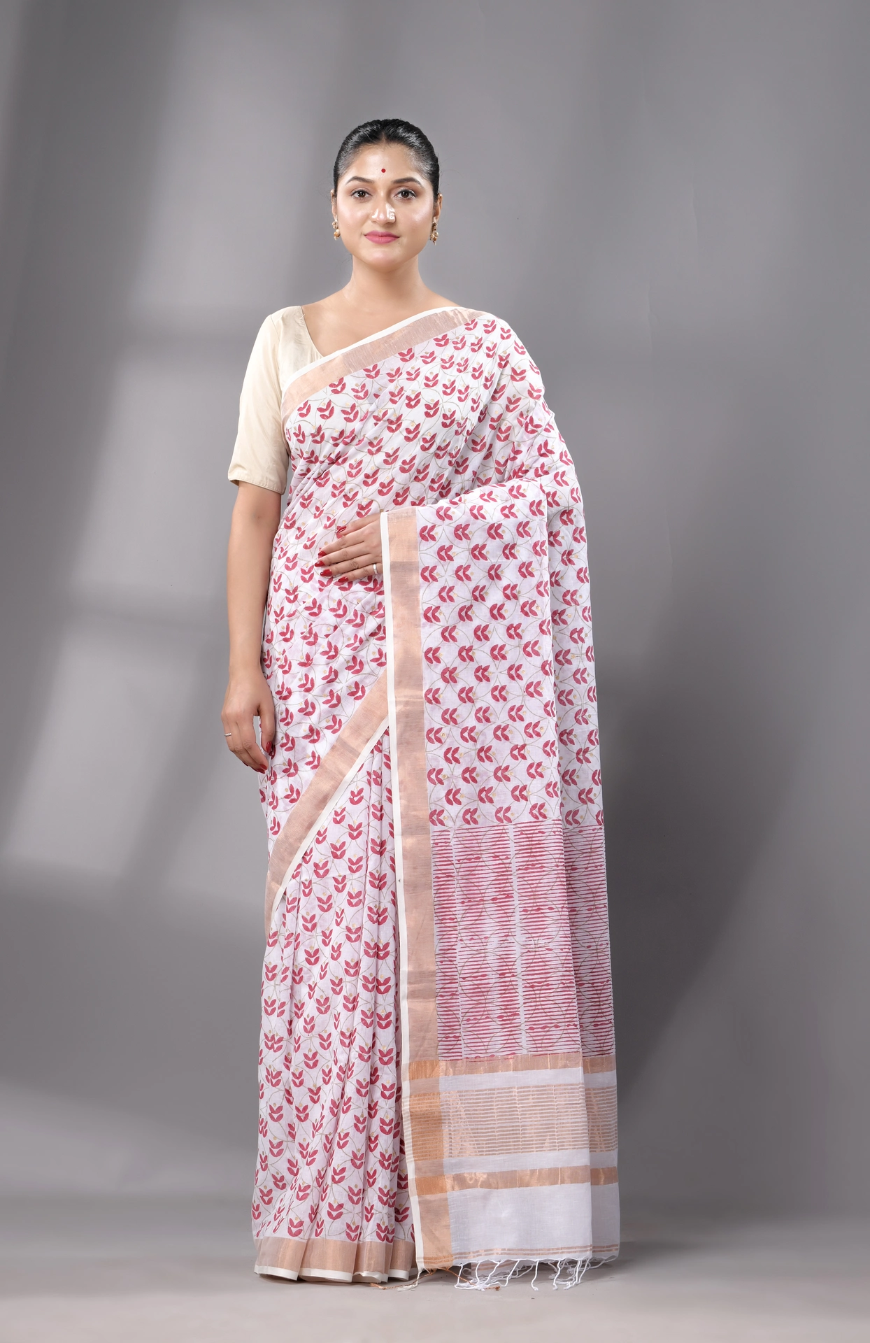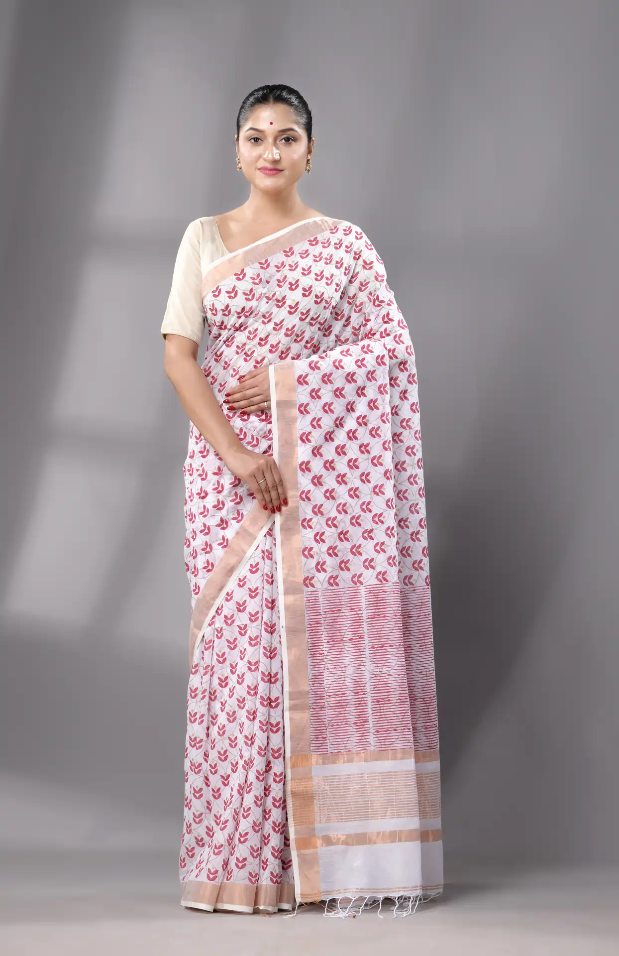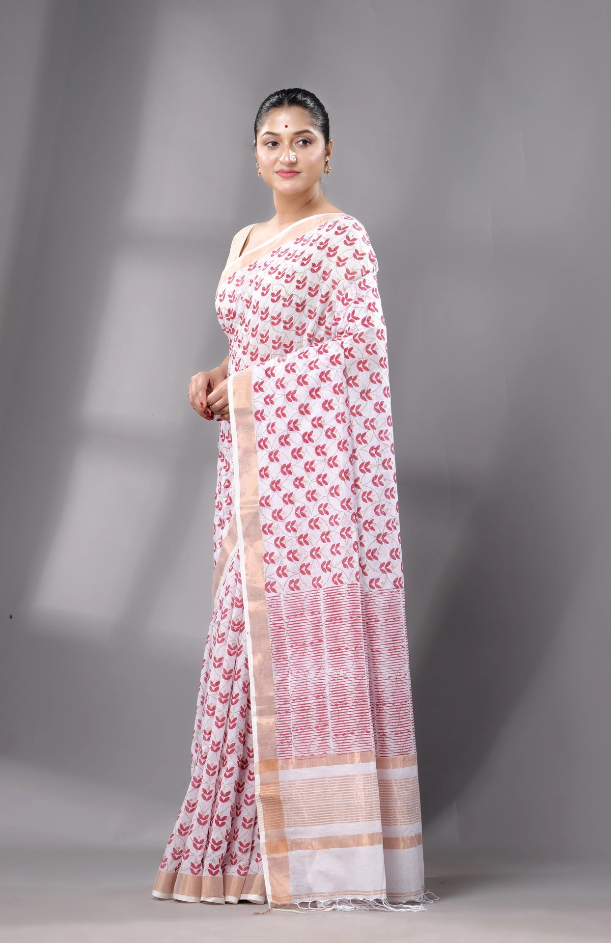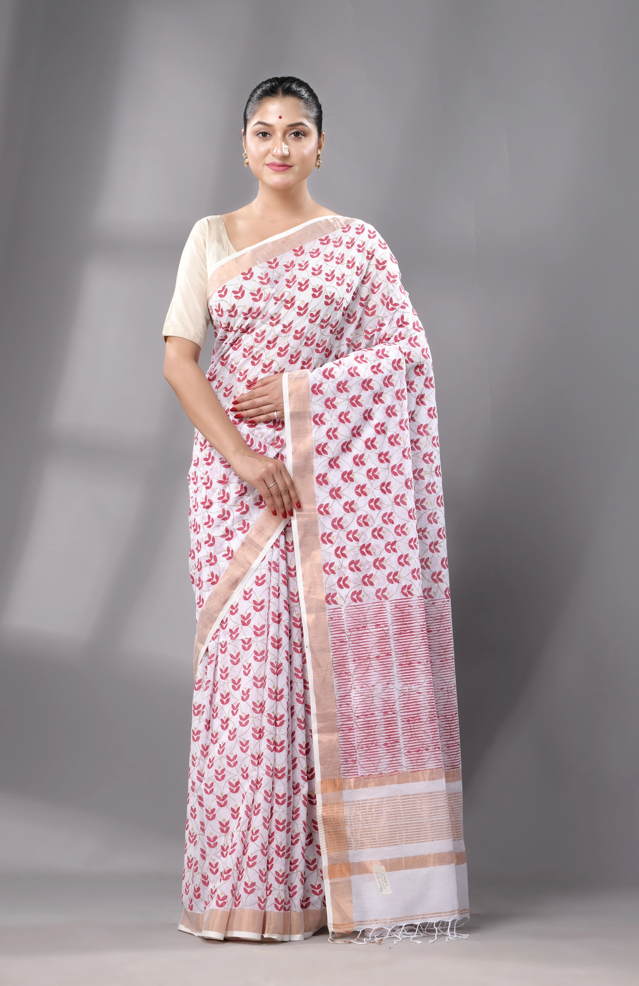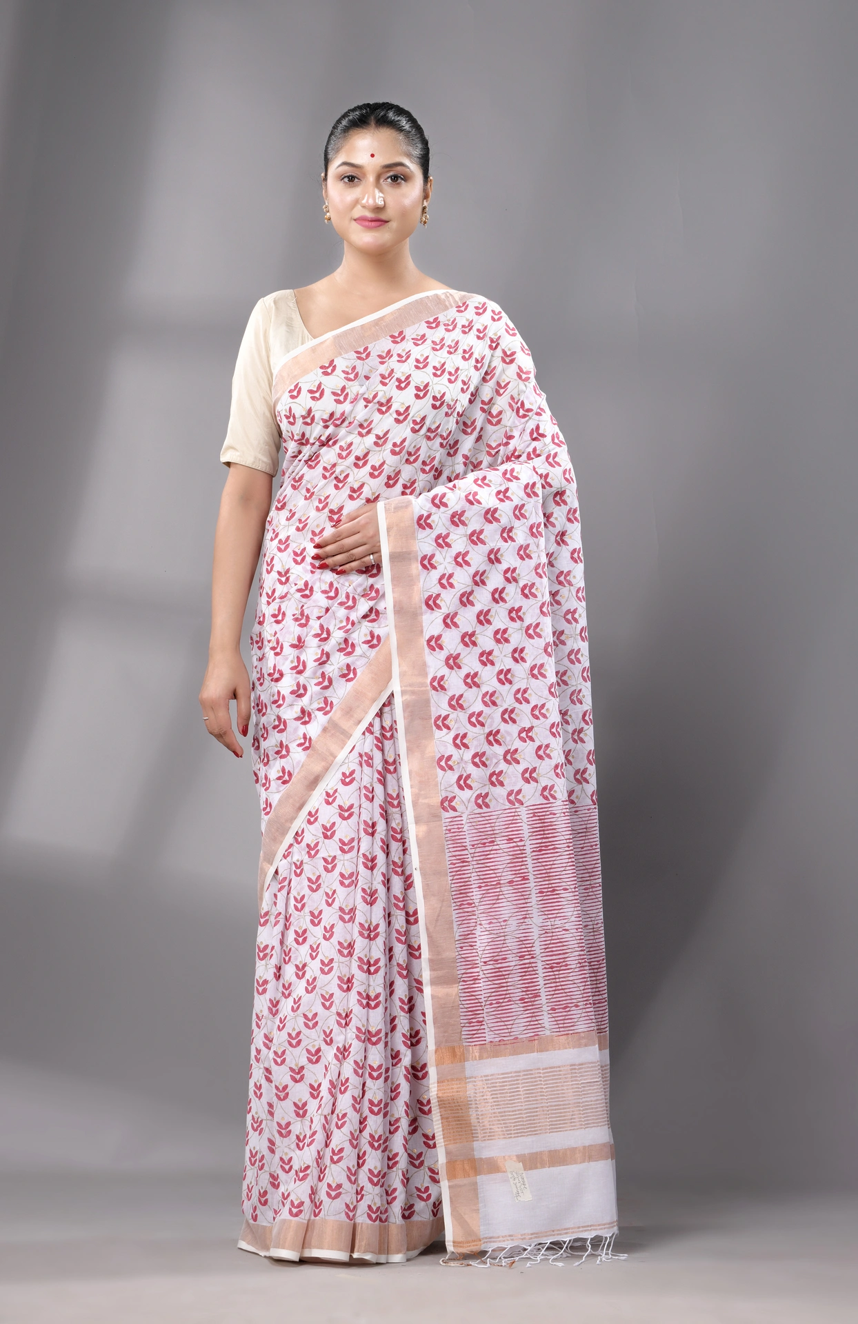 • Authentic Cotton Saree, handwoven in Bengal