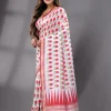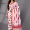 Block Printed Handwoven Cotton Saree – Off-White