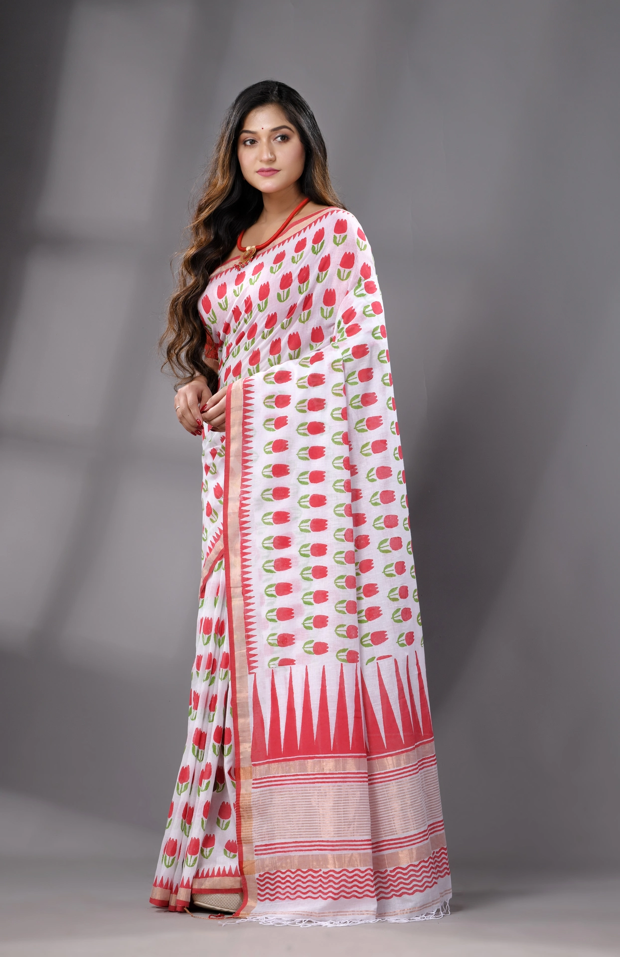 • Authentic Cotton Saree, handwoven in Bengal