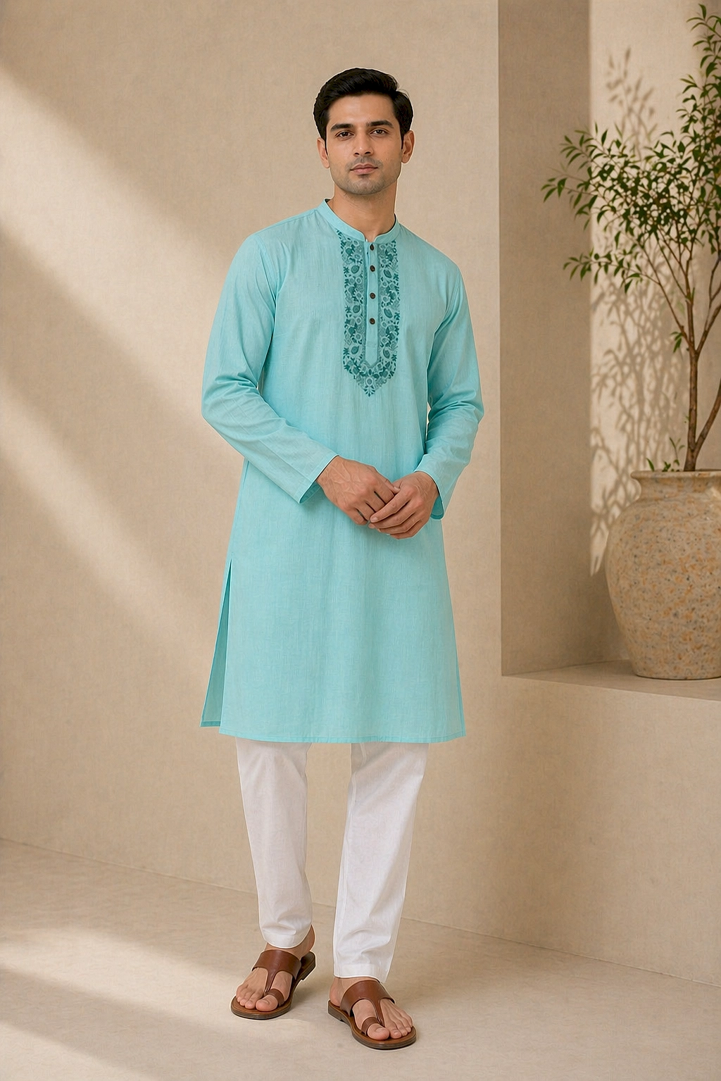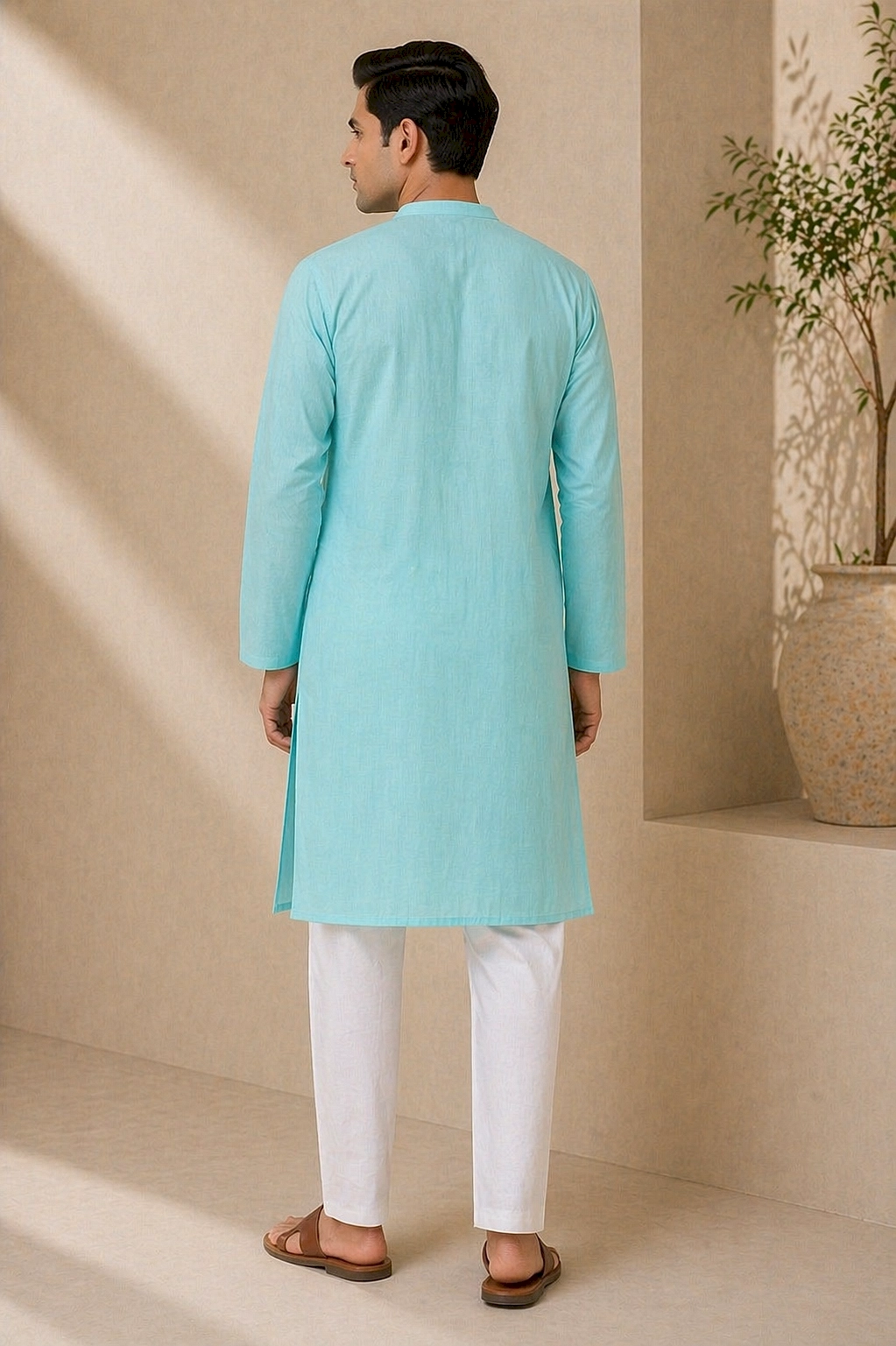 Kurta, the traditional topwear, has been in vogue literally forever. Handwoven Cotton fabric makes this Kurta a classy choice for any occasion.