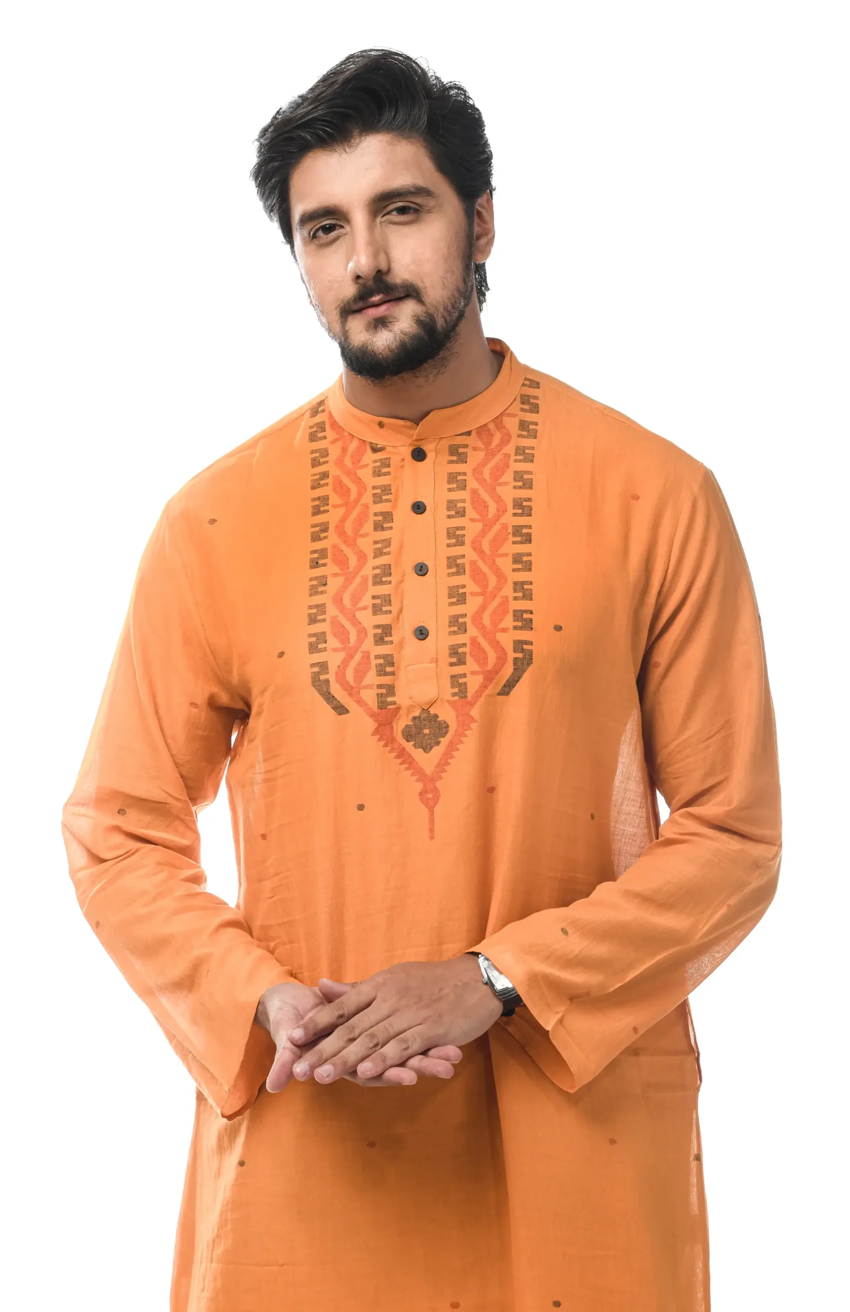 Kurta, the traditional topwear, has been in vogue literally forever. Handwoven Cotton fabric makes this Kurta a classy choice for any occasion.