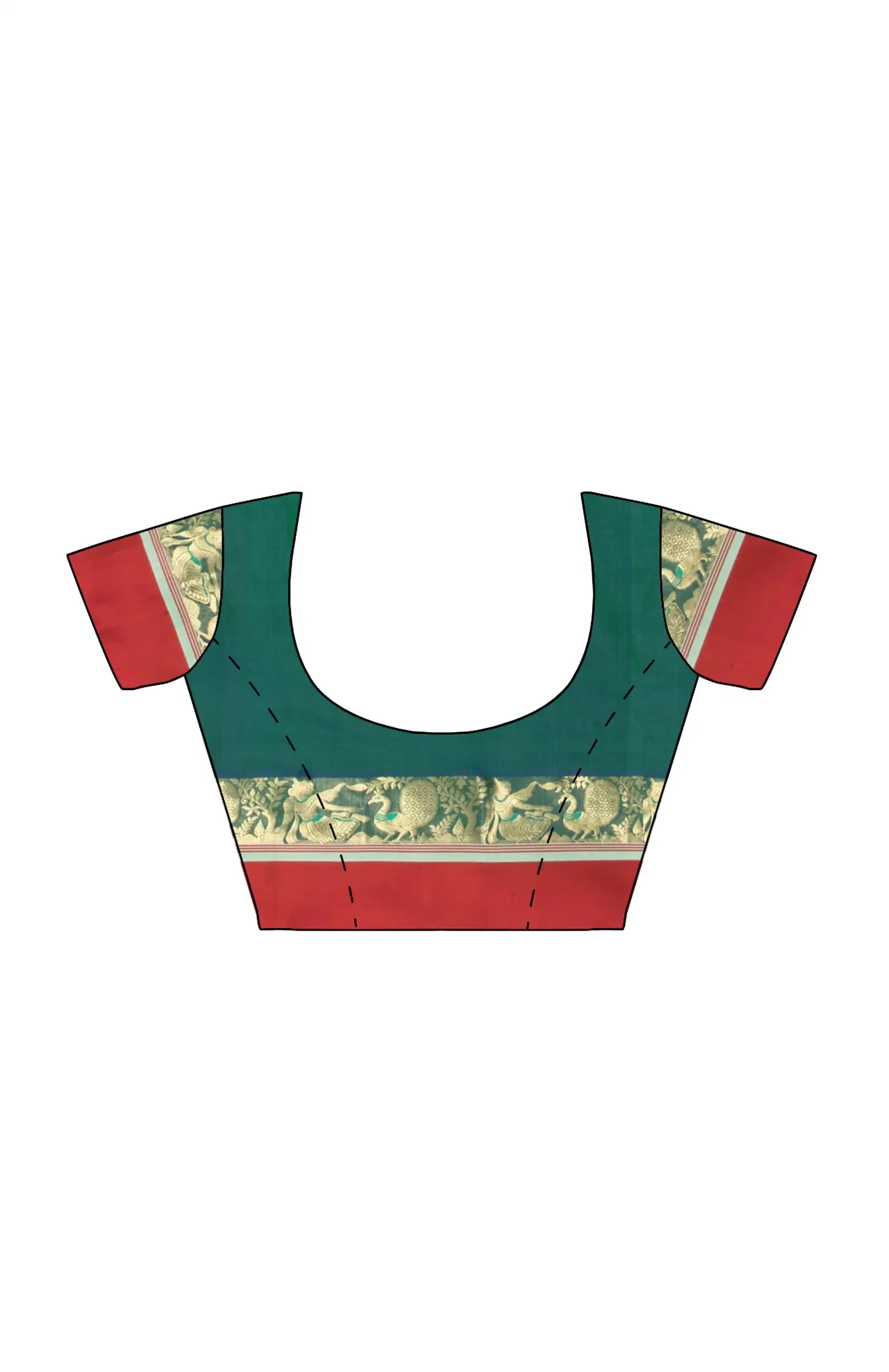 Garod is literally a variety of silk. Bengal’s quintessential Garod saree is characterised by plain red borders set against a smooth natural ground with widely spaced motifs (generally paisleys) scattered diagonally from feet to waist. Women of Bengal prefer Garod sarees during the pujas. A weaver takes around 4-5 days to produce an exquisite Garod saree.