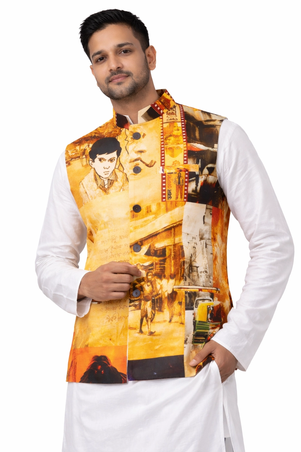 Biswa Bangla has perfected the art of making Jackets with fabric of assured quality, handwoven and chosen with great care. This classy jacket has been widely admired by connoisseurs.