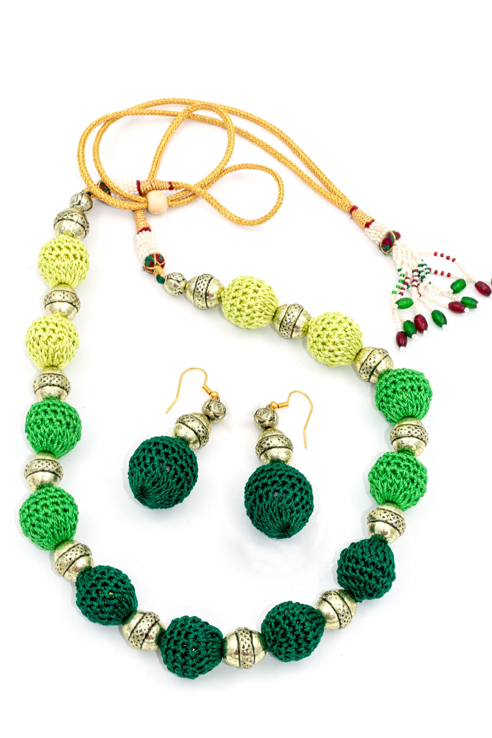 Crochet Green Earring & Necklace Set Women, Girls 1 Necklace with cotton lace, 1 Pair Earring Contemporary Wedding & Engagement, Workwear, Everyday, Religious 100g |