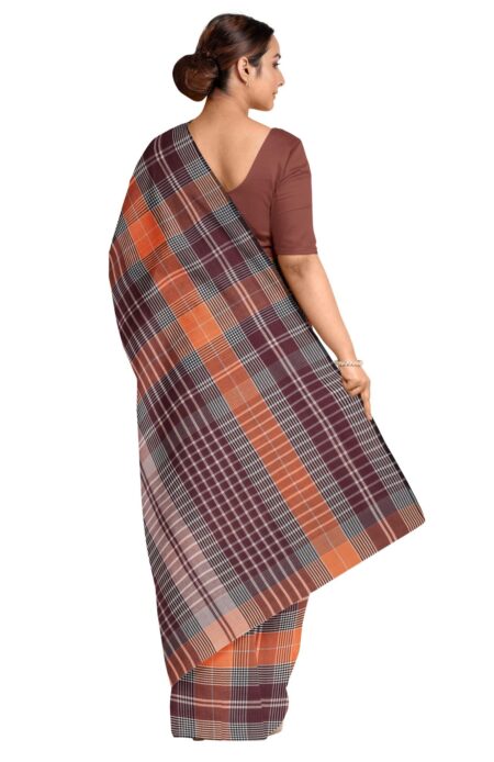 Handwoven Check Mercerised Cotton Saree