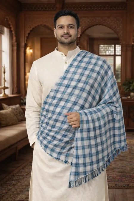 In Bengal, shawls were in fashion since the early 17th century. The most prized woven shawls were figurative and made on the complex Naksha loom. Square shawls with elaborate borders and konia kalka, the corner mango pattern which imitated the Kashmiri shawls, were traditionally woven in black and white for the Bengali aristocracy. There is a mention of a pair of such shawls being woven for Maharaja Bahadur Jatindra Mohan Tagore. Biswa Bangla reintroduces the famous Jamdani Shawls that were once the pride of Bengal.