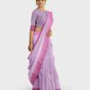 The Santipuri saree is named after Santipur in Nadia District of West Bengal, specially known for its saree with the jacquard design. Fine cotton yarn ranging from 60s to 100s is used both in warp and weft. Santipur has been famous for its elegant designs inspired by nature: designs such as Ganga-Jamuna, Benkipar, Bhomra, Rajmahal, Anspar, Do-Rookha, Visva-Bharati, Brindamani Mour-Par, Nilambari. The Santipuri saree is a Geographical Indication (GI) product of Bengal. A weaver takes around 2-3 days to complete a saree.