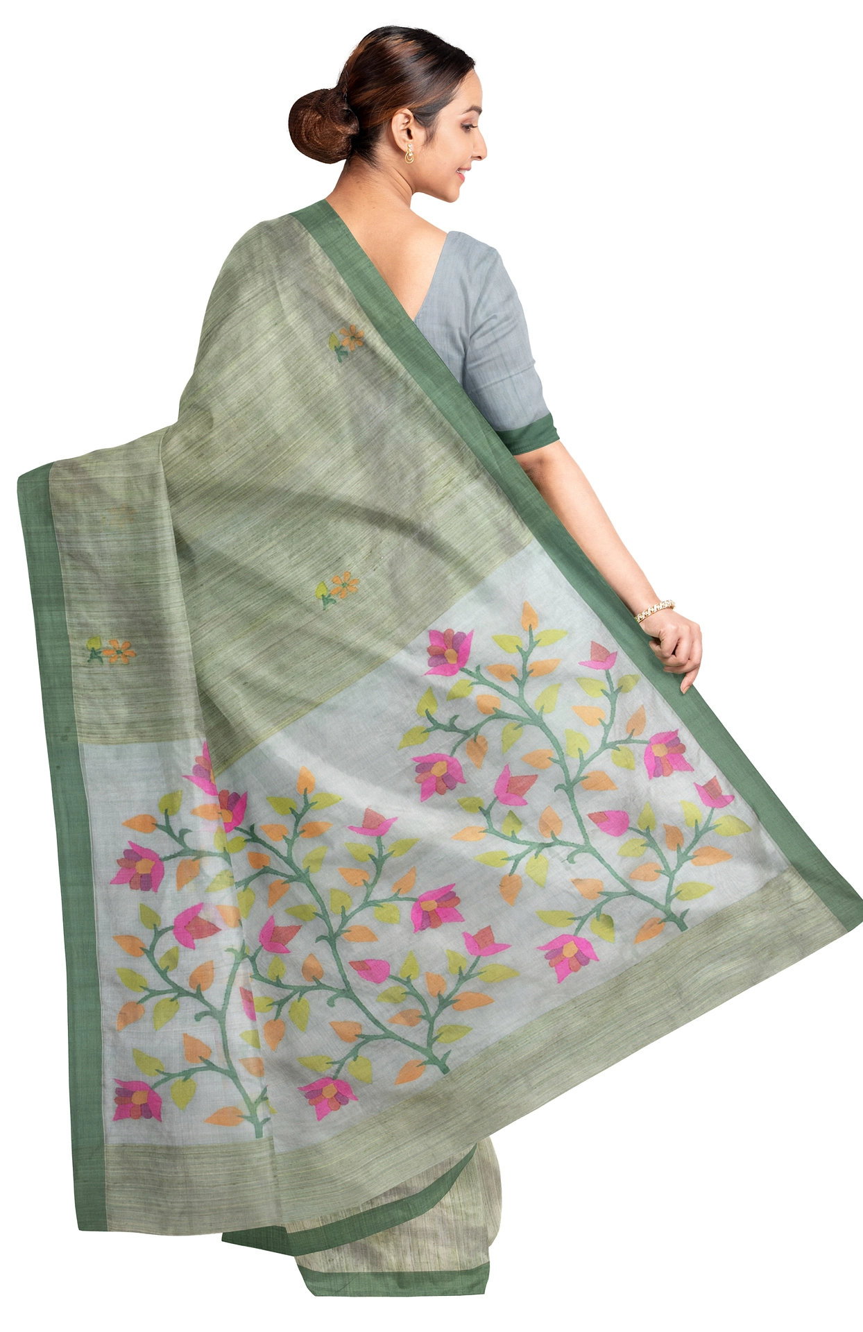 The name Jamdani is a compound word wherein “jam” means flower and “dani” means vase. The name is suggestive of the beautiful floral motifs that adorn these gorgeous sarees.
