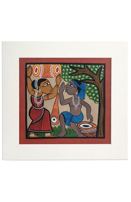 The Patua community, consisting of itinerant scroll painters and singers, create these paintings on cloth using natural colours derived from fruits, vegetables, and flowers. With the support of Biswa Bangla’s market linkage approach, many Patua artists have gained secured livelihoods, helping to preserve and promote their distinct cultural heritage.