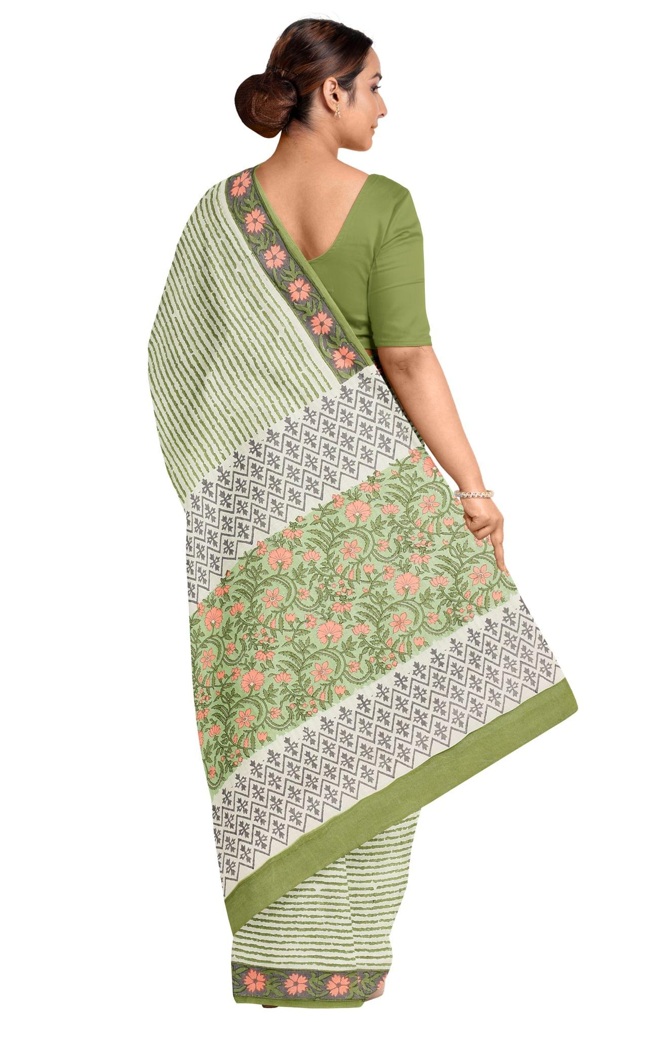Printed Cotton Saree without Blouse Piece