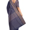 The Santipuri saree is named after Santipur in Nadia District of West Bengal, specially known for its saree with the jacquard design. Fine cotton yarn ranging from 60s to 100s is used both in warp and weft. Santipur has been famous for its elegant designs inspired by nature: designs such as Ganga-Jamuna, Benkipar, Bhomra, Rajmahal, Anspar, Do-Rookha, Visva-Bharati, Brindamani Mour-Par, Nilambari. The Santipuri saree is a Geographical Indication (GI) product of Bengal. A weaver takes around 2-3 days to complete a saree.